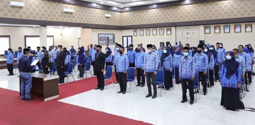 AMBIL SUMPAH—Terlihat puluhan pejabat yang diangkat sedang diambil sumpahnya.