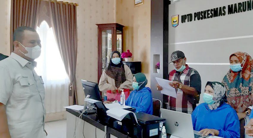 UPTD Puskesmas Marunggi, merupakan salah satu puskesmas di Kecamatan Pariaman selatan sebagai pusat layanan vaksinasi kepada masyarakat, dan itu terlihat dari aktivitas petugas medis yang bertugas sebagai vaksinator sedang memberikan layanan Vaksinasi kepada masyarakat.