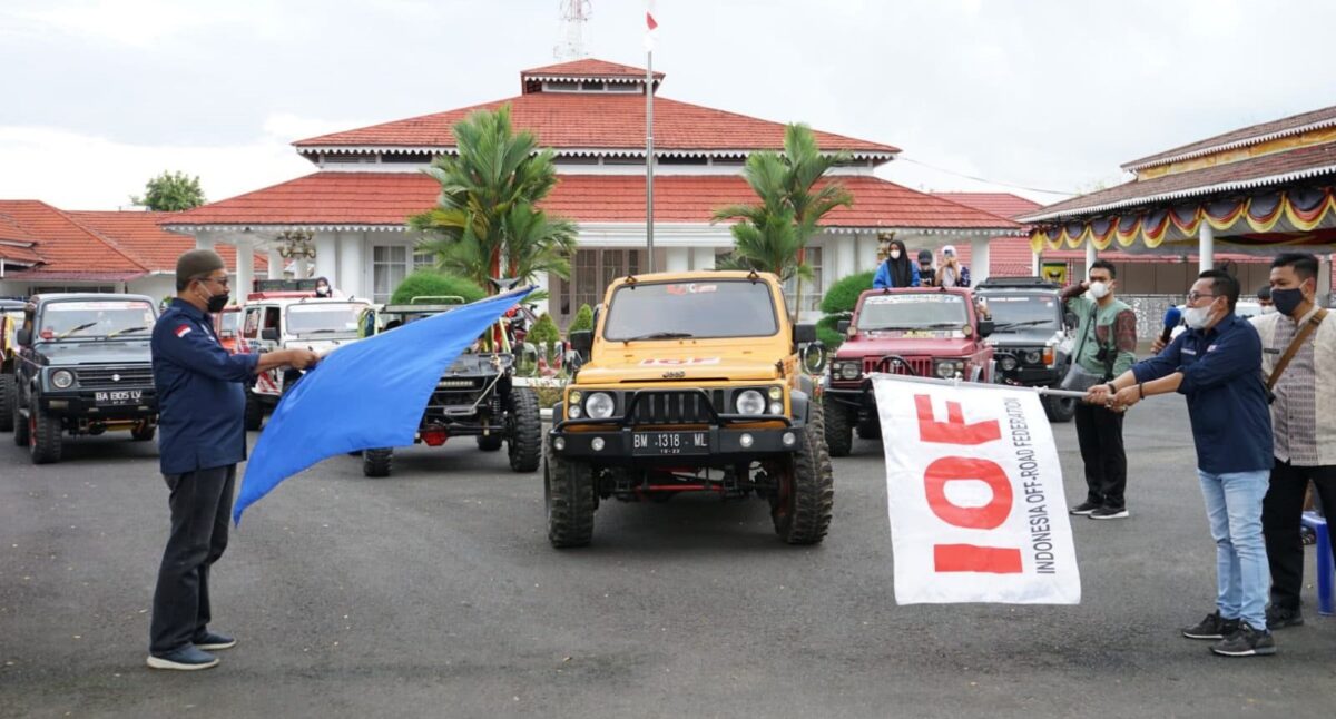 TANAHDATAR, METRO–Bupati Tanah Datar Eka Putra, didampingi Plt. Sekda Edi Susanto, lepas keberangkatan Komunitas Indonesia Offroad Federation (IOF) Tanah Datar untuk mengikuti Event Offroad se-Sumbar yang akan digelar di Padang, di halaman Gedung Indo Jolito Batusangkar, baru baru ini.