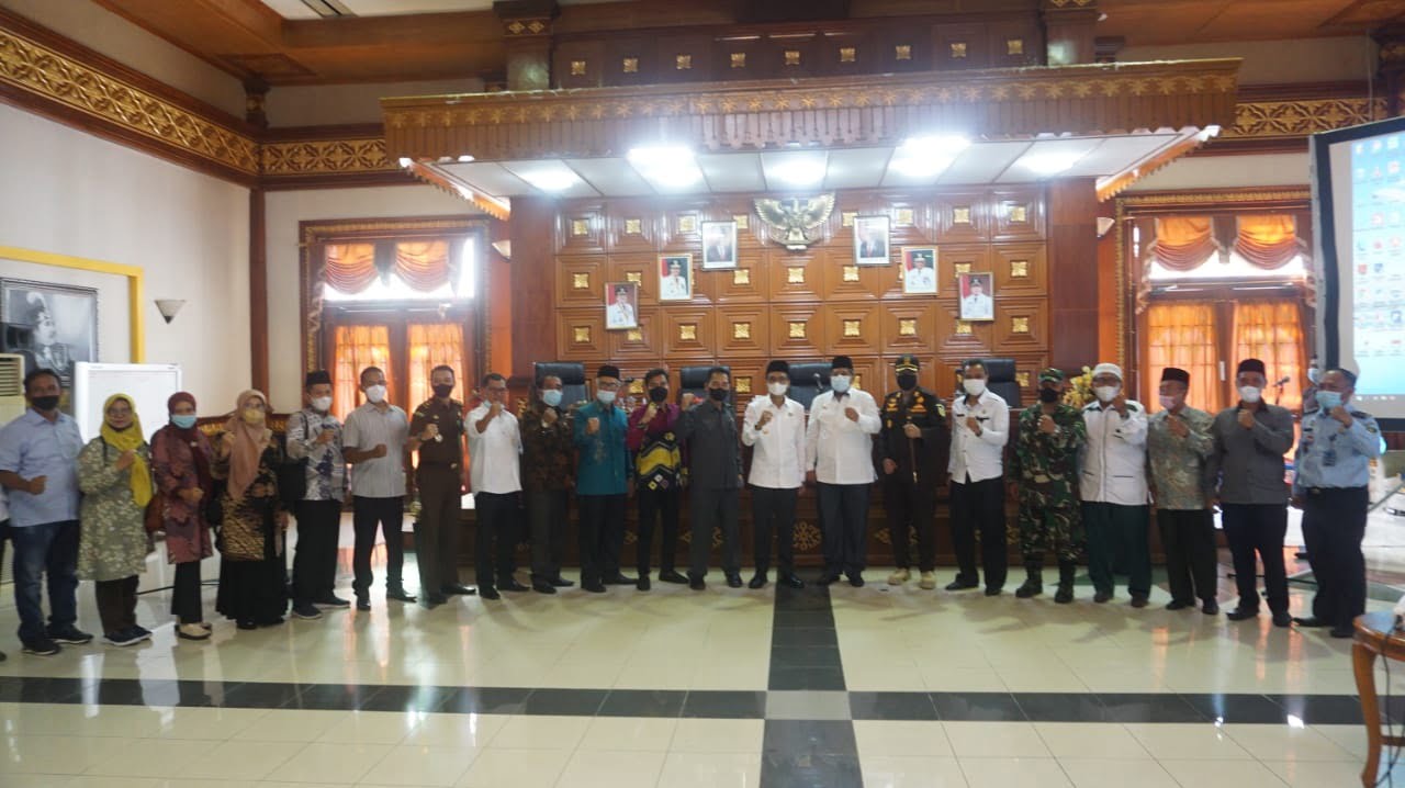 FOTO BERSAMA— Bupati Liapuluhkota Safaruddin bersama Forkopimda foto bersama Bupati Siak Alfedri.