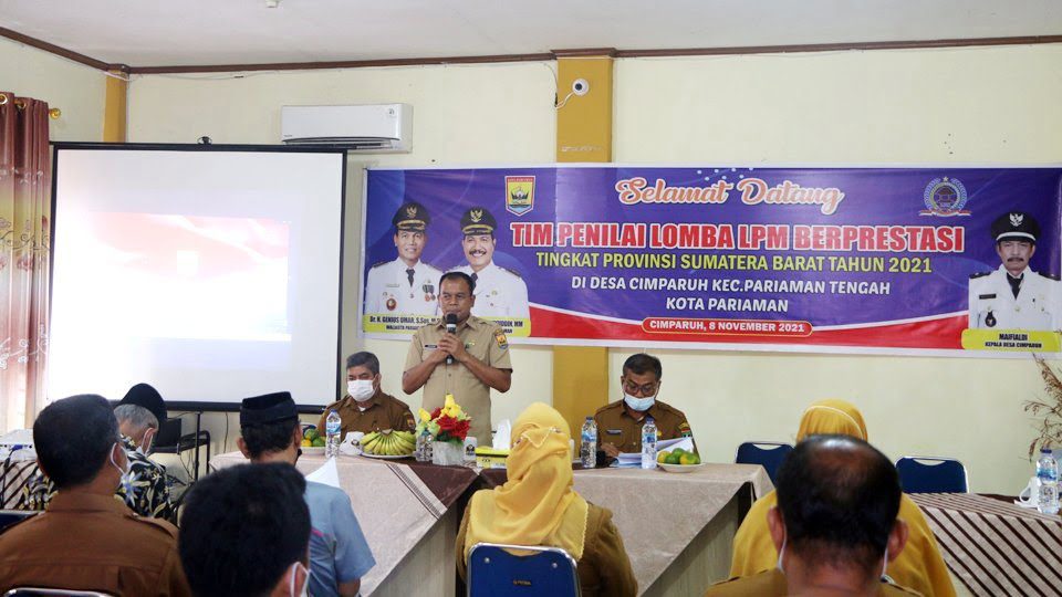 PARIAMAN, METRO–Lembaga Pemberdayaan Masyarakat (LPM) Desa Cimparuah mewakili Kota Pariaman dalam ajang Penilaian LPM berprestasi tingkat Provinsi Sumatera Barat tahun 2021. Kedatangan Tim Penilai yang diketuai oleh Kepala Dinas Pemberdayaan Masyarakat dan Desa (DPMD) Provinsi Sumbar, Amasrul beserta rombongan ke Kantor Desa Cimparuah, Kecamatan Pariaman Tengah Kota Pariaman tersebut disambut oleh Walikota Pariaman yang diwakilkan oleh Kepala Dinas PMDes Kota Pariaman, Hendri didampingi Kepala Desa Cimparuah, Maifialdi dan Pengurus LPM Desa Cimparuah, kemarin.