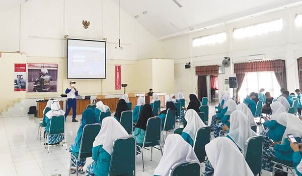 PEMUDA, METRO–PT. Hayati Pratama Mandiri kembali mensosialisasikan keselamatan berkendara bertema #cari_aMaN goes to School kepada para siswa SMK Pertanian Pembangunan Padang.