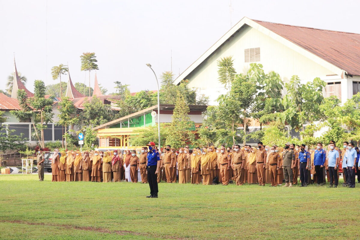 POLIKO, METRO–Pemerintah Kota Payakumbuh melaksanakan apel pagi bersama pasca libur dan cuti lebaran Idul Fitri 1443 H di halaman balai kota, Senin (9/5). Dalam kagiatan yang dihadiri oleh Wali Kota Riza Falepi, Wakil Wali Kota Erwin Yunaz, dan Sekda Rida Ananda itu juga dilaksanakan serah terima jabatan Ketua Dewan Pengurus KORPRI Kota Payakumbuh oleh Asisten III Amriul Dt. Karayiang yang telah purna tugas alias pensiun, serta acara silaturahmi halal bihalal bersama pejabat administrator dan pengawas, lurah, kepala puskesmas, serta kepala sekolah se Kota Payakumbuh.