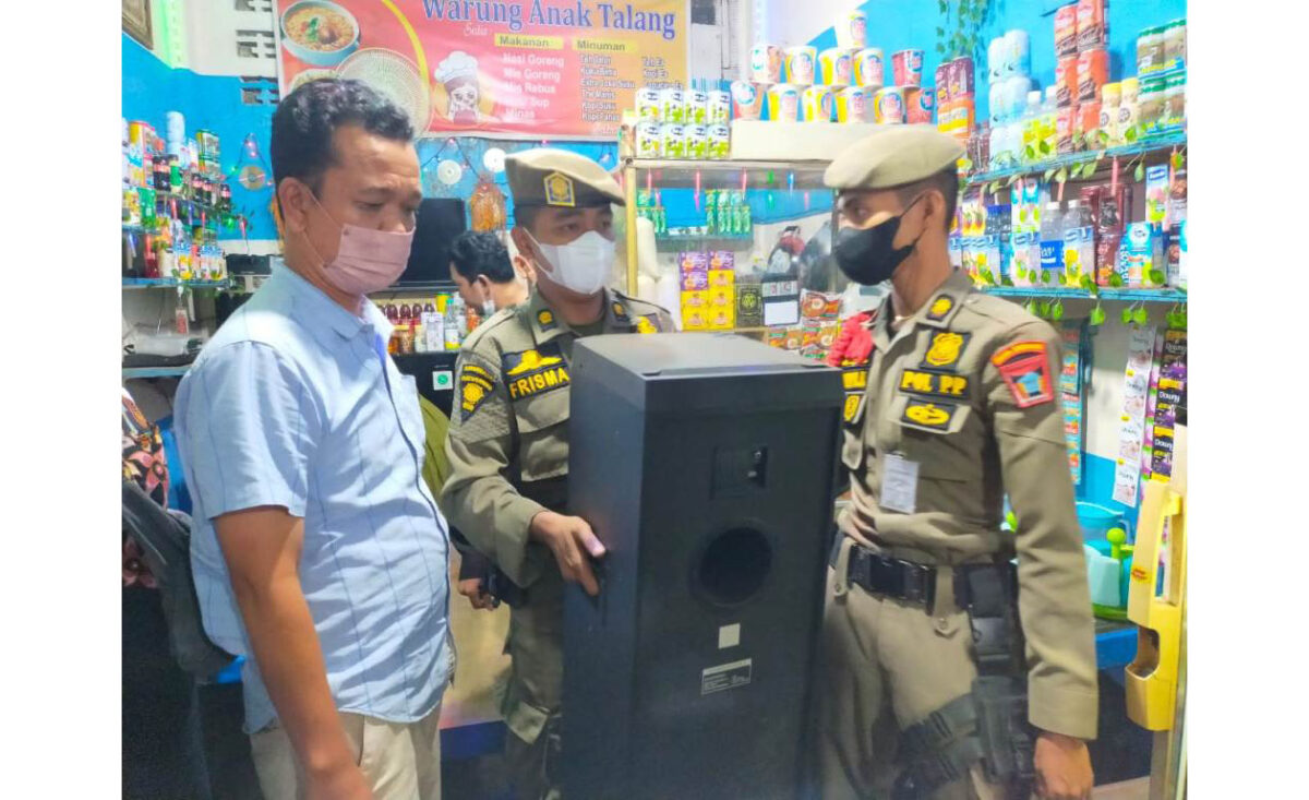 “Petugas di lapangan menertibkan dan mengamankan 6 unit elektronik berupa televisi, speker, mickwarles di 4 kafe yang ada di kawasan Atom Center. Barang bukti tersebut diamankan ke Mako Satpol PP Kota Padang, karena telah melanggar Trantibum,” ungkap Deni.