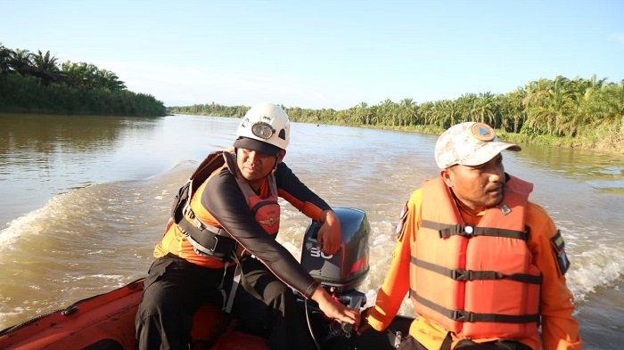 BALITA HILANG— Tim SAR melakukan pencarian terhadap balita yang hilang tenggelam di sungai Rantau Panjang, Kabupaten Pasbar.