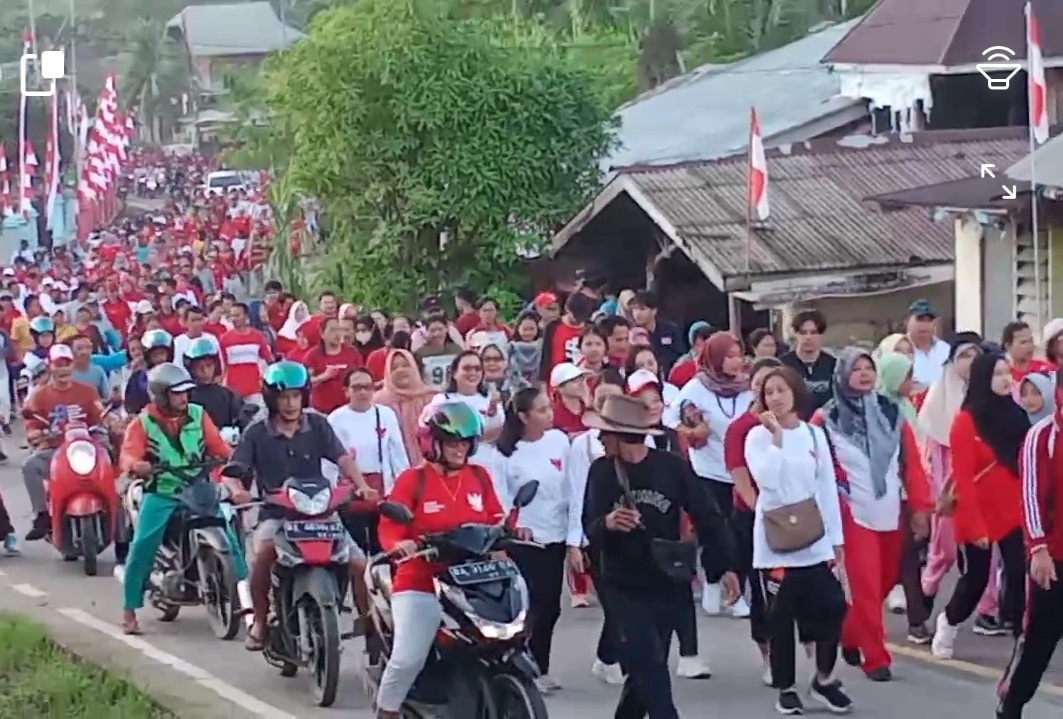 Ikut hadir dalam kegiatan jalan santai Hut RI unsur Forum Koordinasi Pimpinan Daerah (Forkopimda) Kabupaten Mentawai dan masyarakat Tuapejat, Peserta jalan santai mulai dari pelajar, ASN di lingkungan Pemkab Mentawai dan warga setempat