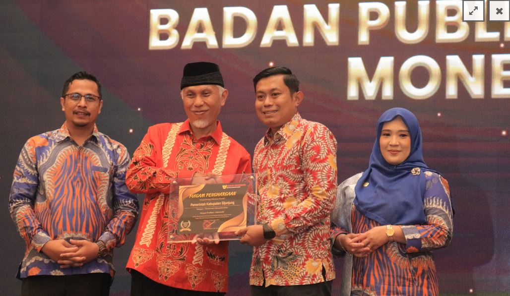 SIJUNJUNG, METRO–Pemerintah Daerah Kabupaten (Pemkab) Sijunjung yang terus melayani masyarakat dengan komitmen , Pemkab Sijunjung memang layak menerima penghargaan. Pemkab Sijunjung mendapatkan penghargaan dari Komisi Informasi Provinsi Sumatera Barat pada Anugerah Keterbukaan Informasi Publik 2023 sebagai Kabupaten dengan Predikat Informatif pada Kamis (21/12) di ZHM Premiere Padang. Penghargaan ini diserahkan langsung oleh Gubernur Sumatera Barat Mahyeldi yang diterima oleh Kadis Kominfo Sijunjung David Rinaldo.