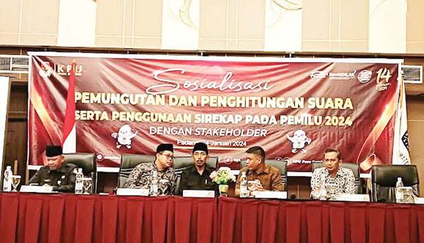 PADANG, METRO–Komisi Pemilihan Umum (KPU) Provinsi Sumatera Barat (Sumbar) menggelar Sosialisasi Pemungutan dan Penghitungan Suara serta Penggunaan Sirekap Pemilu 2024 kepada para stakeholder terkait tingkat Provinsi Sumbar.
