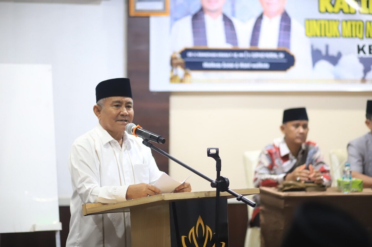 SAMBUTAN—Wakil Wali Kota Solok, H.Suryadi Nurdal berikan sambutan saat pembukaan, training Centre (TC) kedua bagi para kafilah Kota Solok dalam menyongsong MTQ Nasional Provinsi Sumatera Barat Ke XLI (41) Tahun 2025 di Kota Bukittinggi.