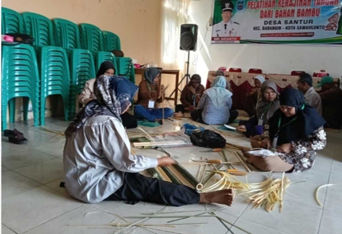 SAWAHLUNTO, METRO–Pemerintah Desa Santur, Kecamatan Barangin, Kota Sawahlunto menggelar Pelatihan Kerajinan Tangan dari Bahan Bambu pada Selasa (4/11) bertempat di Aula Kantor Desa Santur.
