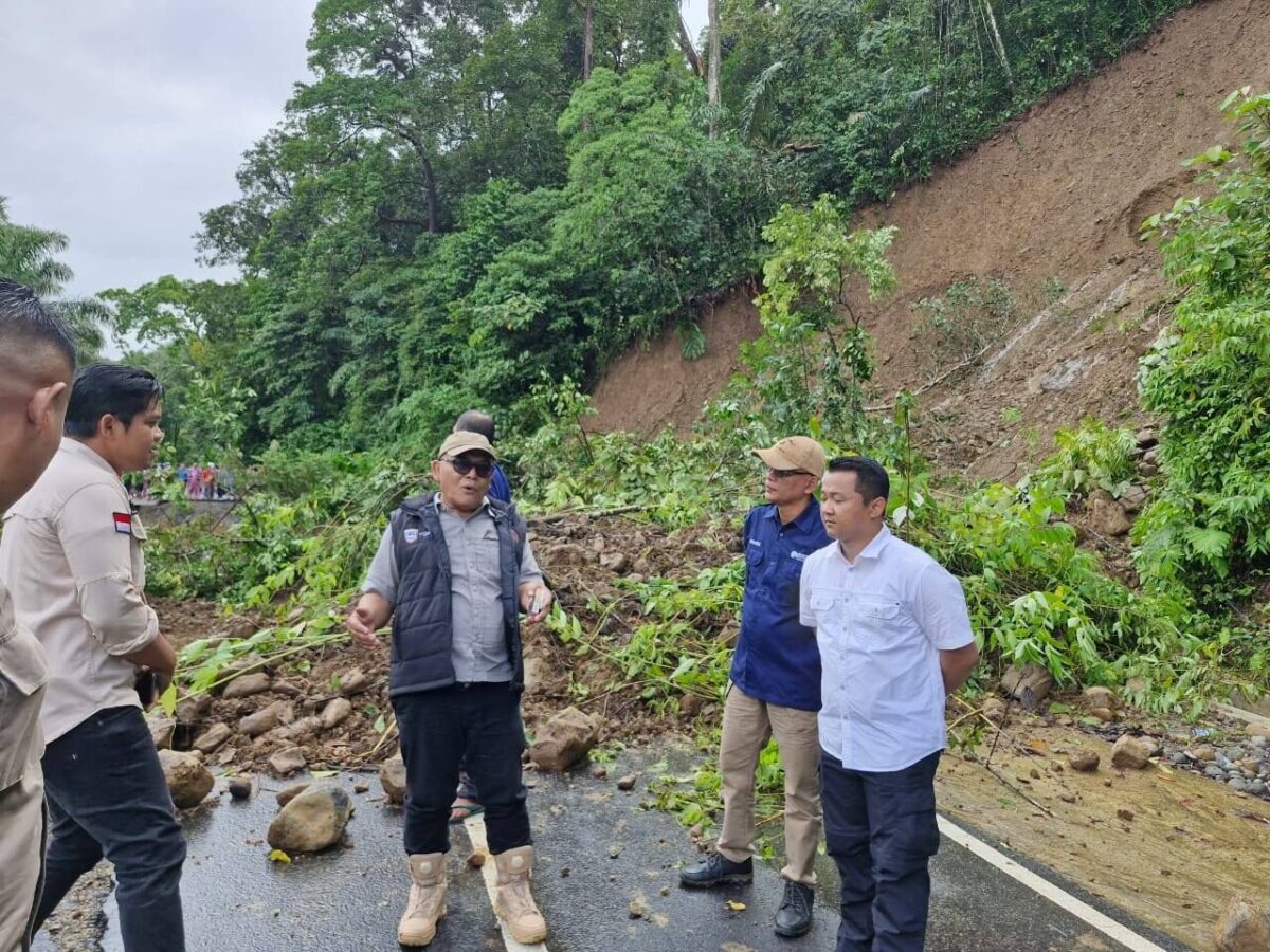 TINJAU LOKASI LONGSOR— Bupati Pasaman Barat (Pasbar) Yulianto, didampingiserta sejumlah pimpinan OPD, saat meninjau warga terdampak banjir dan longsor di empat kecamatan.