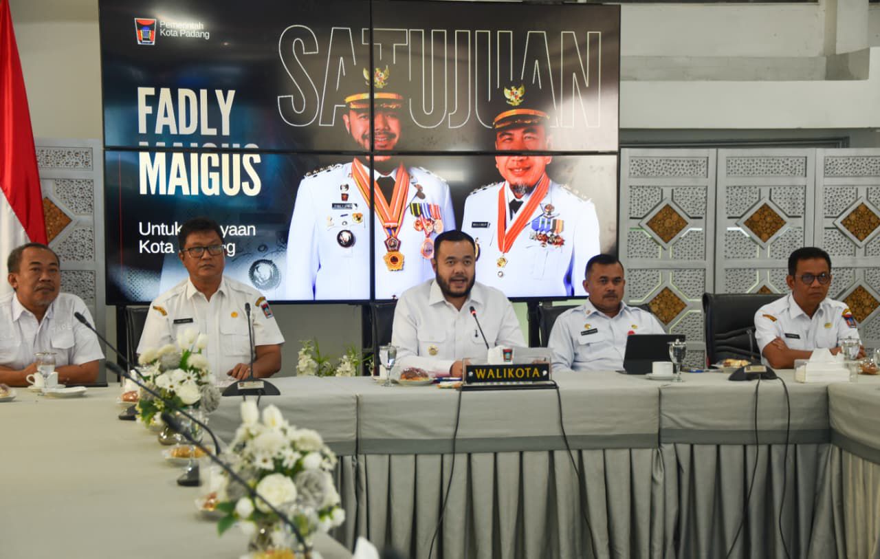 A YANI, METRO—Wali Kota Padang Fadly Amran mengikuti Rembuk dan Bincang-Bincang Otonomi Daerah (Reboan) bersama Kementerian Dalam Negeri (Kemendagri) Republik Indonesia, secara daring dari Gedung Putih Rumah Dinas Wali Kota Padang, Rabu (29/4).