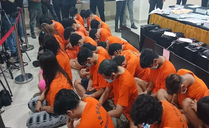 JUDI ONLINE— Puluhan pelaku yang terlibat kasus judi online diringkus.