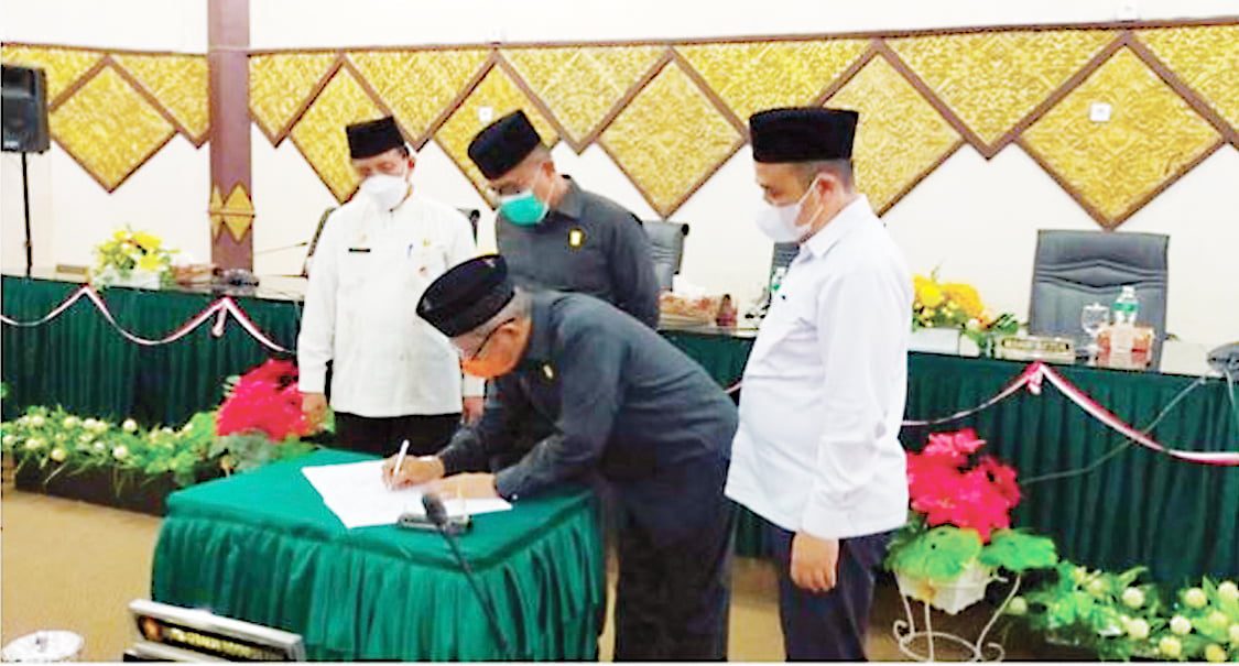“Semua Fraksi telah menyetujui, maka dilakukan penandatanganan Perda Pengelolaan Keuangan Daerah dengan nomor 22 tanggal 5 November 2021,” lanjut Syafrial Kani.