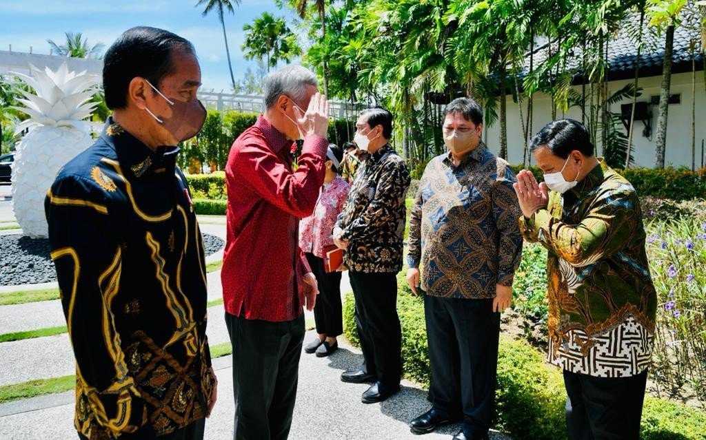Saat tiba di The Sanchaya Resort Bintan, PM Lee langsung disambut Presiden Jokowi. Alunan rebana juga menyambut PM Lee.