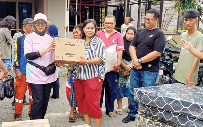 Adapun bantuan yang disalurkan berupa beras 100 kg, mie instan 10 dus, gula, kopi, teh, minyak goreng, ikan kaleng, kecap, saos, kasur, pakaian dalam, kain sarung, daster, ember, makanan anak, family kit, kids ware, hingga perlengkapan memasak seperti kompor gas, tabung gas, regulator dan slang.