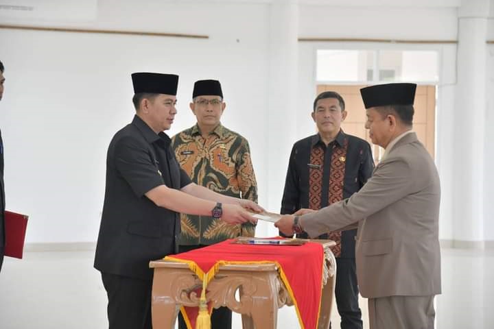 SAWAHLUNTO, METRO–Penjabat (Pj) Wali Kota Sawahlunto Fauzan Hasan, S.STP, M.Si, melantik dan mengambil sumpah jabatan Penjabat (Pj) Sekretaris Daerah Kota Sawahlunto Drs. Irzam, K, MM, di Aula IKM, pada Kamis (1/8).