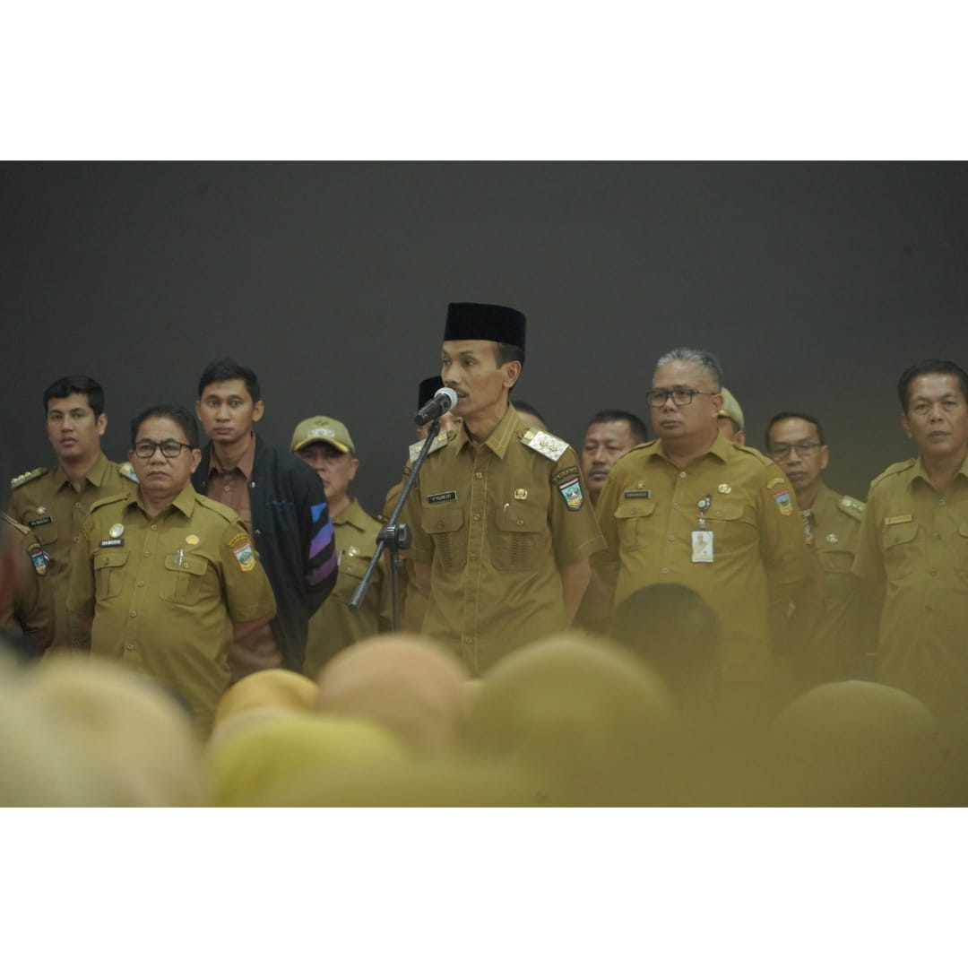 SAMBUTAN— Wakil Bupati Solok Selatan H. Yulian Efi berikan sambutan dalam Apel Gabungan ASN di Aula Kantor Bupati Solok Selatan, Senin (2-12).