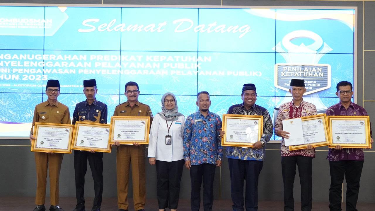 LIMAPULUH KOTA, METRO–Peningkatkan kualitas pelayanan publik Pemerintah Kabupaten Limapuluh Kota dibawah kepemimpinan Bupati Safaruddin Dt.Bandaro Rajo kembali menunjukkan tren positif. Kepastian itu didapatkan setelah Ombudsman RI menyampaikan hasil penilaian kepatuhan penyelenggaraan pelayanan publik bagi 19 Pemerintah Kabupaten/Kota di Sumatera Barat di Auditorium Gubernuran, Senin, (8/1) pada acara penganugerahan predikat penilaian kepatuhan penyelenggaraan pelayanan publik tahun 2023.
