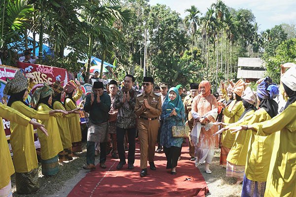 PENYAMBUTAN— Bupati Limapuluh Kota Safaruddin Dt.Bandaro Rajo dan Ketua DPRD Deni Asra, disambut masyarakat Durian Gadang.