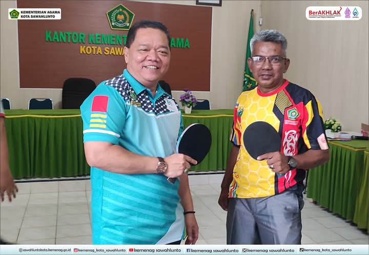 akankemenag Sawahlunto Dedi Wandra memulai Eksibisi tenis meja
