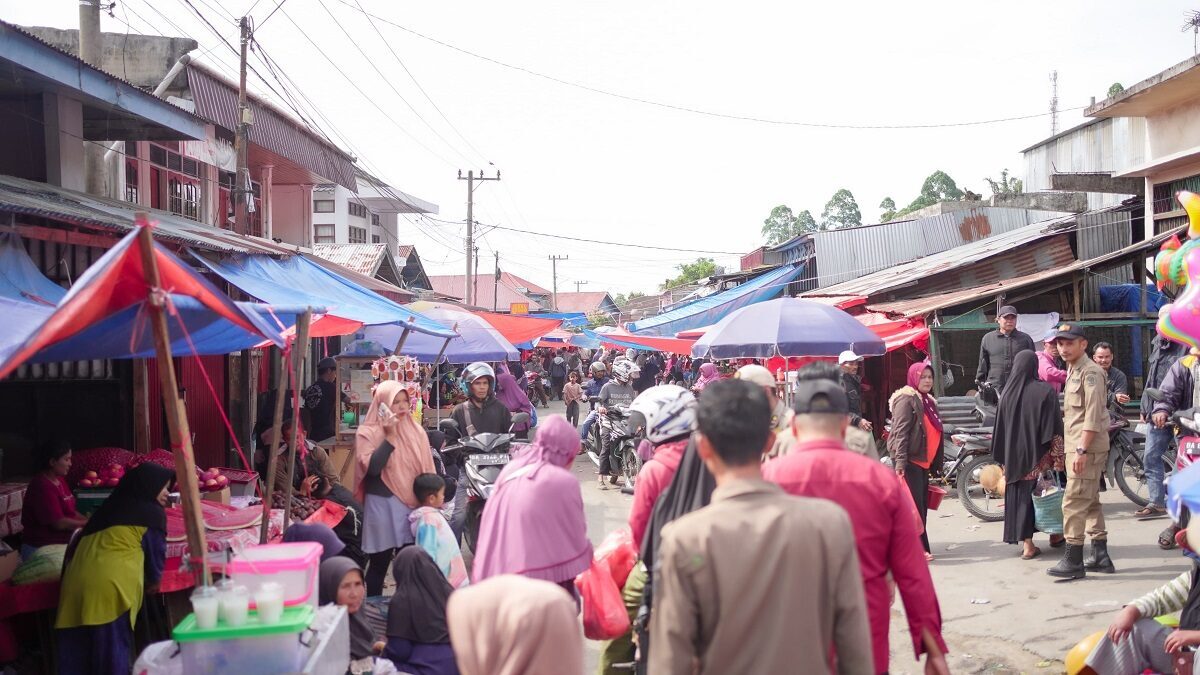 Bupati Solok Jon Firman Pandu pun menyusuri setiap sudut pasar dan berdialog langsung dengan para pedagang, serta warga yang beraktivitas di sekitar lokasi.