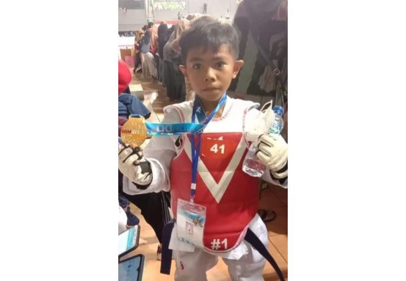PADANG, METRO–Berbagai prestasi terus diraih Dafa Trisaputra, taekwondoin Dojang Wirabraja Sport Center (SC). Siswa Sekolah Dasar Negeri (SDN) No.35 Jembatan Babuai Padang Selatan ini menaiki podium utama di GOR Jaka Baring Palembang, Minggu siang (16/1), setelah pada babak final event Taekwondo Sumsel Open Zona Kualifikasi Taekwondo Championship 2022 berhasil meraih medali emas.