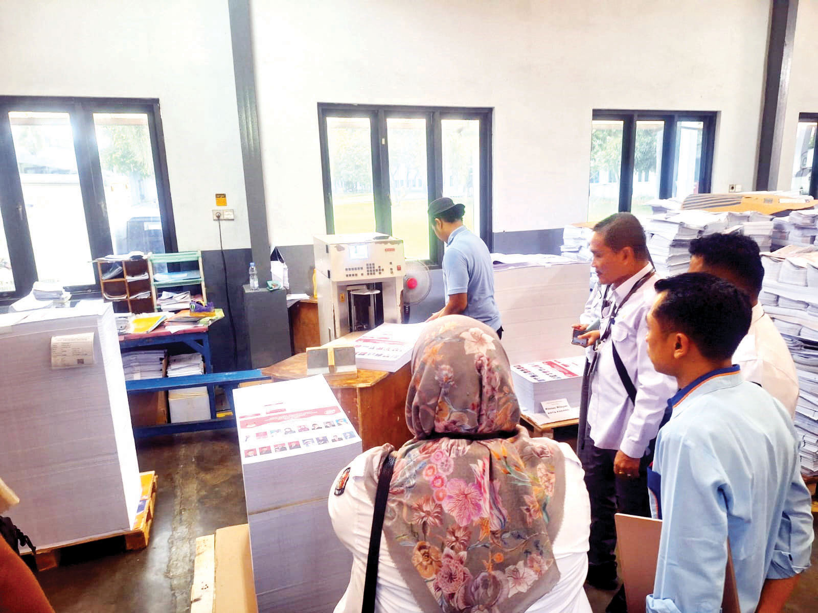 CEK SURAT SUARA— Anggota KPU Sumbar saat meng-cek Surat Suara untuk Pemungutan Suara Ulang (PSU).