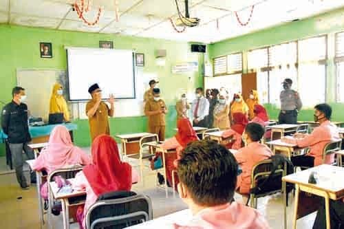“Dari hasil peninjauan dan pengecekan kita hari ini (kemarin), alhamdulillah berjalan lancar sesuai protokol kesehatan (prokes). Anak-anak ketika sampai di sekolah sudah memakai masker, suhu tubuhnya dicek, kemudian disuruh cuci tangan baru masuk ke ruang kelas. Di dalam kelas juga disediakan hand sanitizer,” ujar Hendri.