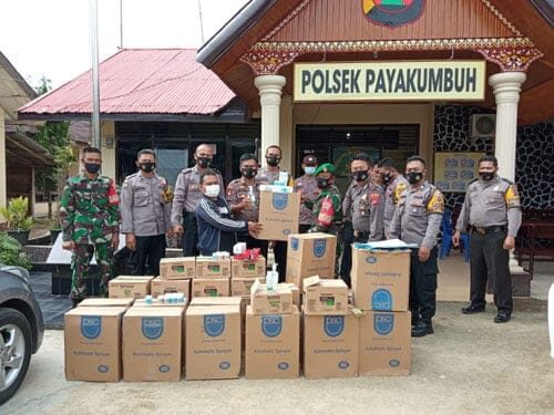 Bhabinkamtibmas Polsek Kecamatan Payakumbuh yang masuk dalam wilayah hukum Polres Payakumbuh serta anggota Babinsa Koramil yaang merupakan salah satu garda terdepan dalam upaya pencegahan penyebaran Covid-19 atau Korona di Wilayah kerja Kecamatan Payakumbuh Kabupaten Limapuluh Kota menerima bantuan berupa Masker Kain, Handsanitizer, Vitamin, Semprotan serta Obat Disenfektan dari Pemerintah Pusat yang disalurkan melalui Forum Peduli Masyarakat Sumbar (FPMS).