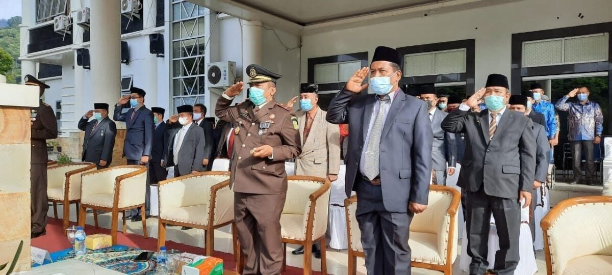 UPACARA HUT SOLSEL— Kajari Solok Selatan Muhammad Bardan mengikuti upacara HUT Kabupaten Solsel ke-17, dalam upacara tersebut juga dihadiri, Kapolres Solok Selatan AKBP Tedy Purnanto SIk, Dandim 0309 Solok yang diwakili Kasdim Mayor Inf Hendra Bagus Arioko, Asisten dan kepala OPD, kepala Instansi Vertikal, Baznas, sejumlah wali nagari, dan pejabat eselon III dan IV.