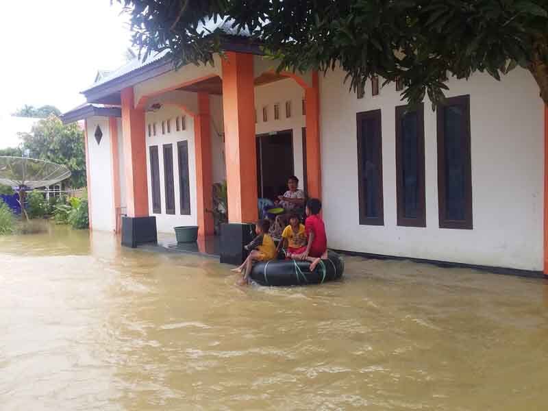 “Kalau hujan lebat di hulu, pasti luapan sungai Batang Lumpo sampai di sini. sudah seperti langganan saja banjir di sini pak. Tapi ini yang cukup parah,” ungkap Aldisman.