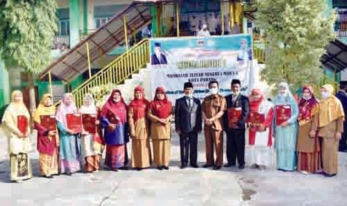 Delapan guru MAN 1 Kota Padang menerima penganugerahan tanda kehormatan Satyalancana Karya Satya tahun 2021. Penyerahan penganugerahan itu dilakukan oleh Kepala Kantor Kemenag Kota Padang, Marjanis di halaman MAN 1 Kota Padang, Senin (11/1).