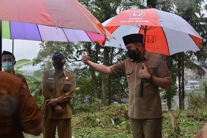 TINJAU—Walikota Padangpanjang Fadly Amran meninjau lokasi objek Kelok Kabuik yang bakal dijadikan destinasi wisata baru di Padangpanjang.