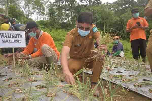 Kota Sawahlunto saat ini sudah 2 desa yang melakukan panen. Sebelumnya pada Desa Lubang Tangah dan sekarang pada Desa Kolok Mudiak yang menyelenggarakan panen perdana bawang merah. Walikota Sawahlunto Deri Asta yang hadir langsung mengikuti panen tersebut bersama Sekretaris Daerah Dr.dr. Ambun Kadri, menyampaikan Pemerintah Kota Sawahlunto melalui Dinas Ketahanan Pangan, Pertanian dan Perikanan berkomitmen untuk terus meningkatkan mutu pertanian masyarakat. Berbagai program dilaksanakan untuk mendukung komitmen itu, seperti pendampingan dan pelatihan pada petani, bantuan bibit dan lainnya.