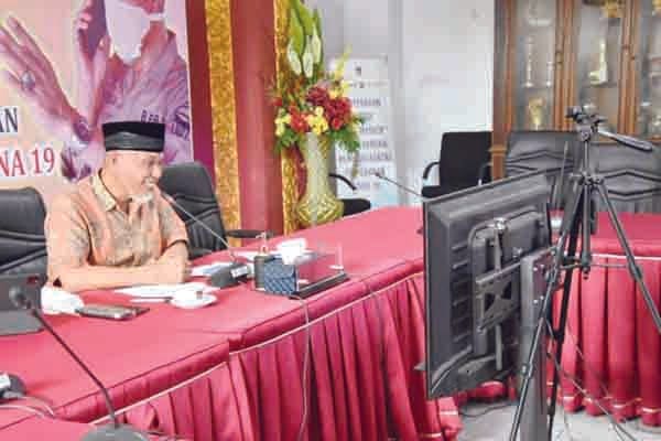 VIRTUAL— Wali Kota Padang H Mahyeldi Ansharullah membuka Training Series Pelatihan Guru se-Sumatera Barat secara virtual di Rumah Dinas Wali Kota, Sabtu (30/1).