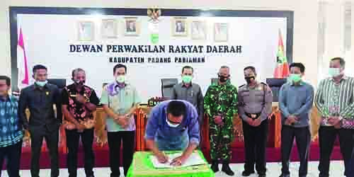 Dewan Perwakilan Rakyat Daerah (DPRD) Kabupaten Padangpariaman menggelar rapat Paripurna penetapan pasangan calon Bupati dan Wakil Bupati terpilih hasil Pilkada Kabupaten Padangpariaman 2020.