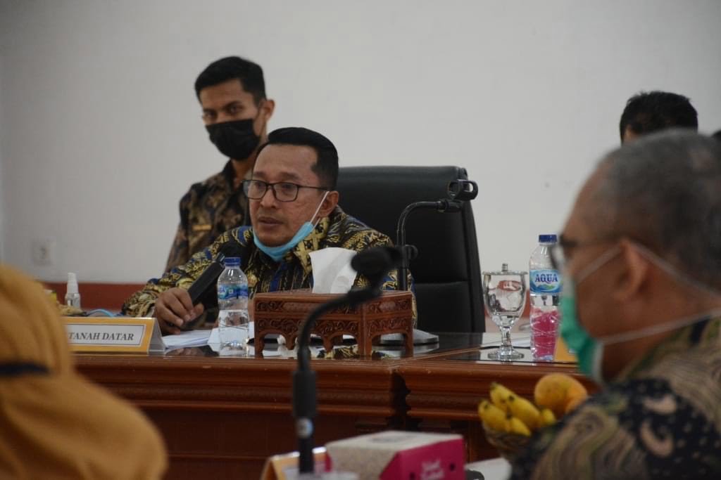 Bupati Eka Putra didampingi Wakil Bupati Richi Aprian pimpin rapat koordinasi dengan kepala perangkat daerah se-Kabupaten Tanah Datar di Aula Kantor Bupati Tanah Datar, baru baru ini.