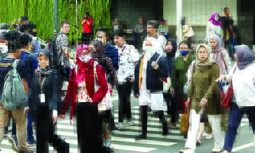 TAK PAKAI—Terlihat beberapa orang warga tidak memakai masker wajah saat melintasi kawasan MH. Thamrin baru baru ini.