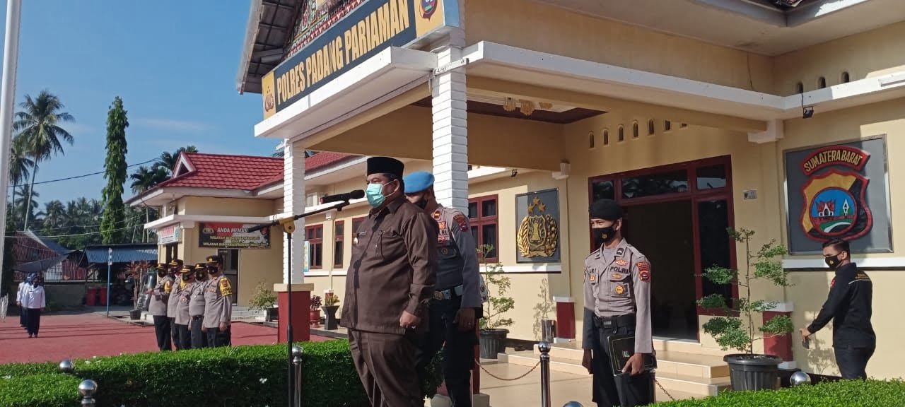 Bupati Padangpariaman Suhatri Bur, kemarin, pimpin apel gabungan rutin di Polres Padangpariaman.
