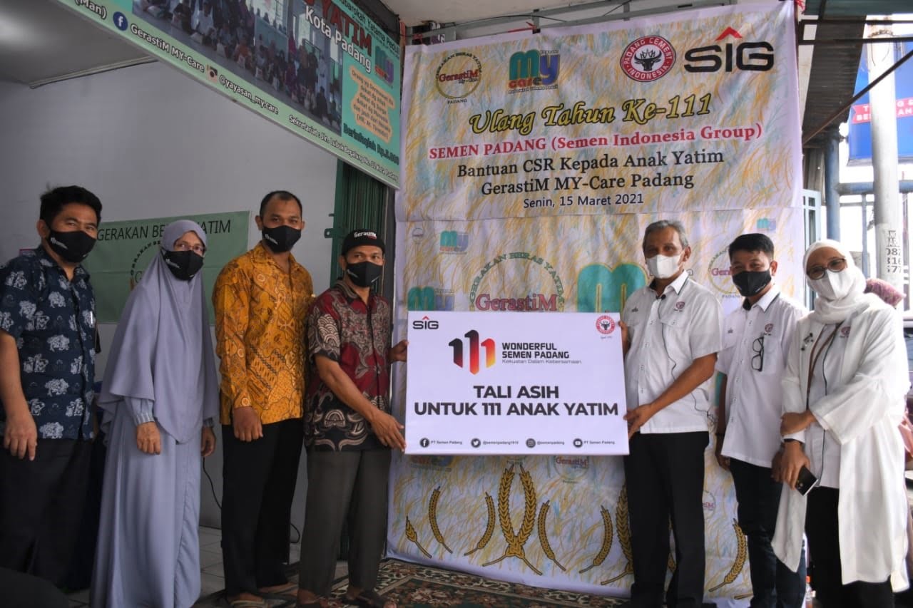 Dalam rangka memperingati HUT ke-111, PT Semen Padang menyalurkan bantuan tali asih kepada 111 anak yatim di Kota Padang.