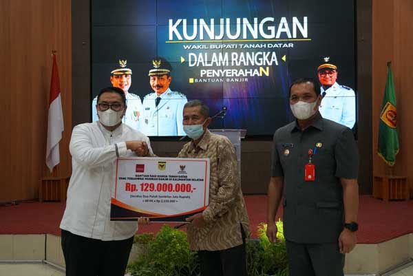 “Sumbangan ini berasal donasi ASN, perantau, masyarakat, Baznas dan donator lainnya. Nilainya tidak besar, tetapi ini menunjukkan rasa peduli kita, di mana pun bapak dan ibu berada, Insya Allah Pemerintah Kabupaten Tanah Datar selalu hadir melayani,” sambung Richi.