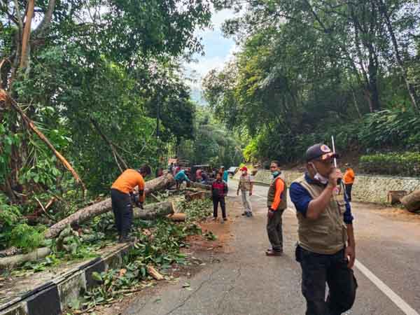 Akibat curah hujan tinggi yang menerpa Kota Sawahlunto sejak sore Kamis (18/3) sekitar pukul 17.00 WIB yang tiada henti mengakibatkan tumbangnya pohon besar yang melintangi akses jalan utama Kota Sawahlunto. Pohon tumbang tersebut persis berada di bawah MTsN Sawahlunto dini hari, Jumat (19/3) sekitar pukul 02.00 WIB. Lalu, sekitar pukul 04.00 WIB petugas Tim BPBD Sawahlunto telah berhasil menyingkirkan material pohon tumbang tersebut.