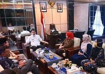 Usaha Mikro Kecil Menengah (UMKM) Kota Sawahlunto, Sorbat Puncer produk rumah tangga, Muharti dan Sandal Songket buatan Rachma Indika kedua warga Saringan Kecamatan Barangin Kota Sawahlunto, mengunjungi Walikota Sawahlunto Deri Asta diruang kerjanya, Jumat (19/3)
