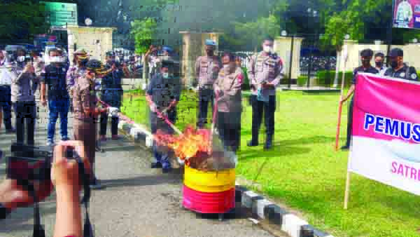 “Pemusnahan ganja sebanyak 30 kg ini merupakan penangkapan yang awalnya bermula dari pelanggaran lalu lintas. Dilakukan pengembangan oleh jajaran didapatilah barang bukti narkoba puluhan jenis ganja di kawasan Bandar Buat, rumah kontrakan pelaku,” ungkap Kapolda.