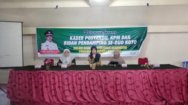 Pemerintah Nagari Duo Koto, Kecamatan Tanjung Raya, Kabupaten Agam, menggelar kegiatan penyuluhan kesehatan bagi Kader Posyandu, Kader Pembangunan Manusia (KPM) dan bidan desa, untuk menekan penurunan angka stunting, Senin (22/3).