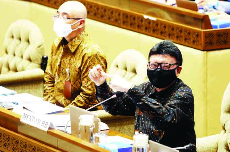 RAPAT— MenPAN dan RB Tjahjo Kumolo saat rapat kerja dengan Komisi II DPR di Kompleks Parlemen, Senayan, Jakarta, Rabu (24/3) kemarin.