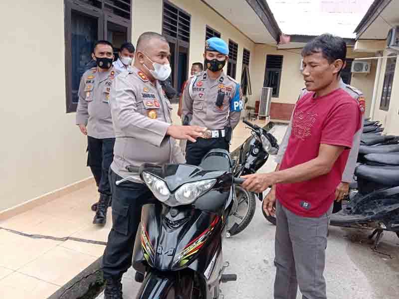 Jajaran Polres di Sawahlunto mengembalikan barang bukti (BB) maling pencurian kendaraan bermotor (curanmor) berupa 8 unit sepeda motor dan 1 unit mesin pencuci motor kepada pemiliknya dengan gratis tanpa dipungut biaya, Kamis (25/3). Tapi, dengan syarat memenuhi surat-surat asli dokumen kepemilikan kendaraan bermotor.