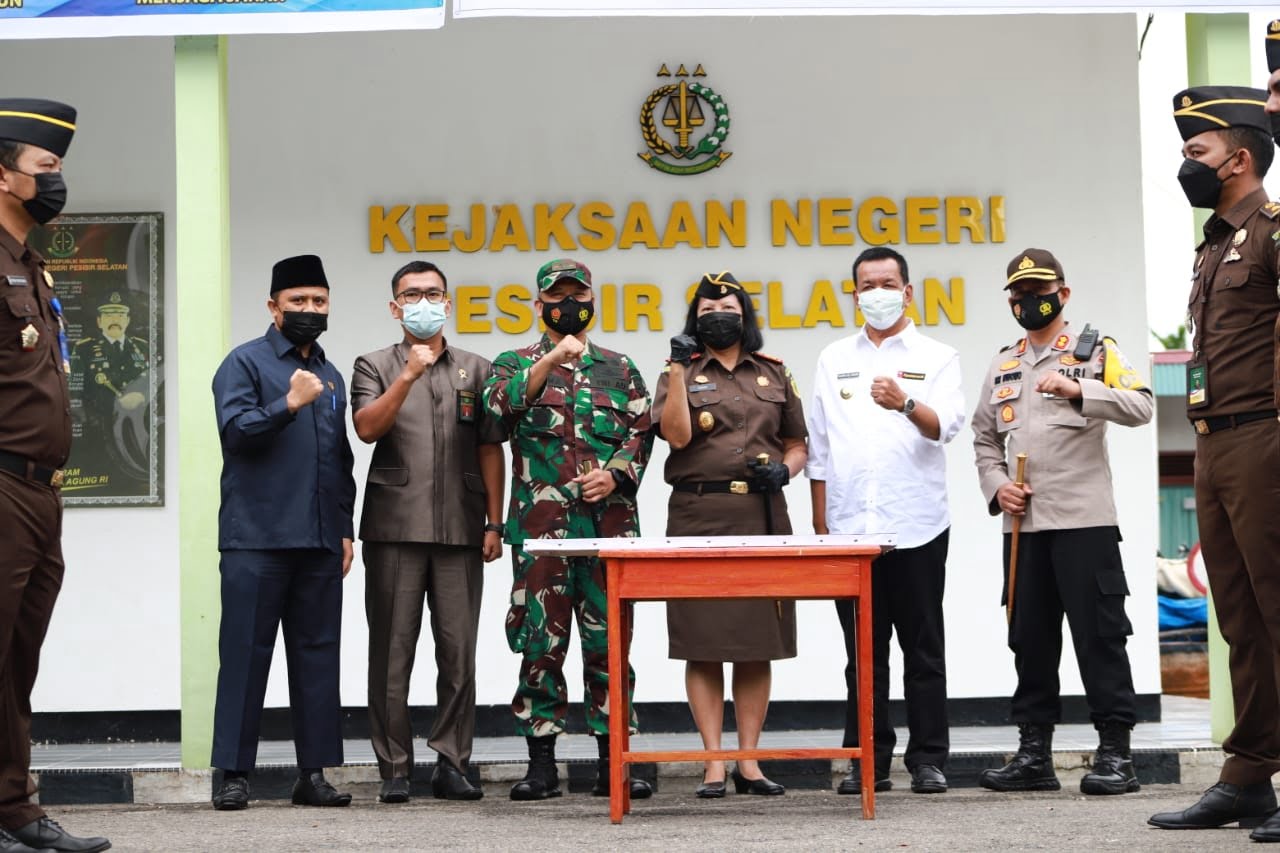 Acara ini turut dihadiri Bupati Pesisir Selatan, Drs. Rusma Yul Anwar, Ketua DPRD Pessel, Kapolres, Dandim, Kepala Pengadilan Negeri. Dan, Forkopimda. Di gelar di halaman Kantor Kejari Painan, Kabupaten Pesisir Selatan.