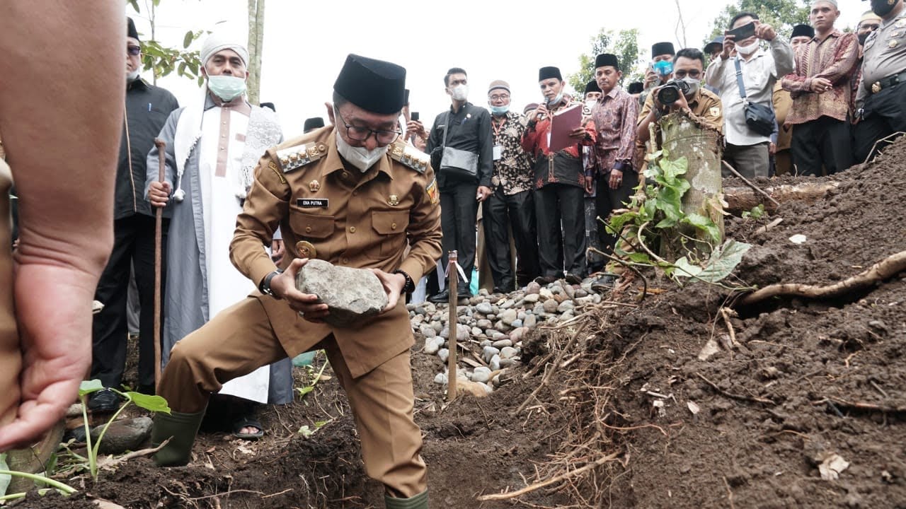 Bupati Tanah Datar Eka Putra meletakkan batu pertama pembangunan Pondok Pesantren (Ponpes) Tarbiyah Islammiyah Nurul Yaqin Batipuh Ateh, Senin (29/3). Bupati Eka Putra mengatakan peletakan batu pertama itu merupakan sejarah bagi masyarakat Batipuh Ateh pada khususnya, dengan berdirinya ponpes akan berdampak perkembangan agama di daerah itu. “Kita semua mengetahui, bahwa ponpes tempat dilahirkannya generasi yang berilmu agama, ini sejalan dengan visi pemerintah daerah yakni terwujudnya kabupaten Tanah Datar madani berlandaskan adat basandi syara, syara basandi kitabullah, maka dari itu pemerintah daerah mendukung berdirinya ponpes ini,” ujar Bupati Eka.